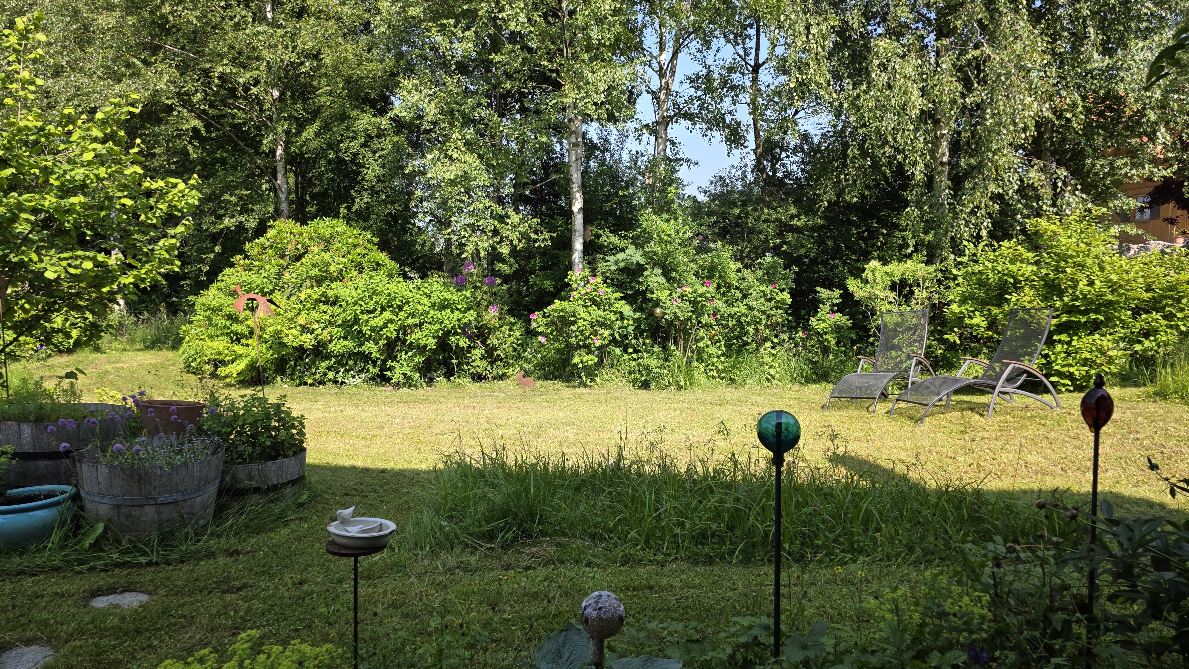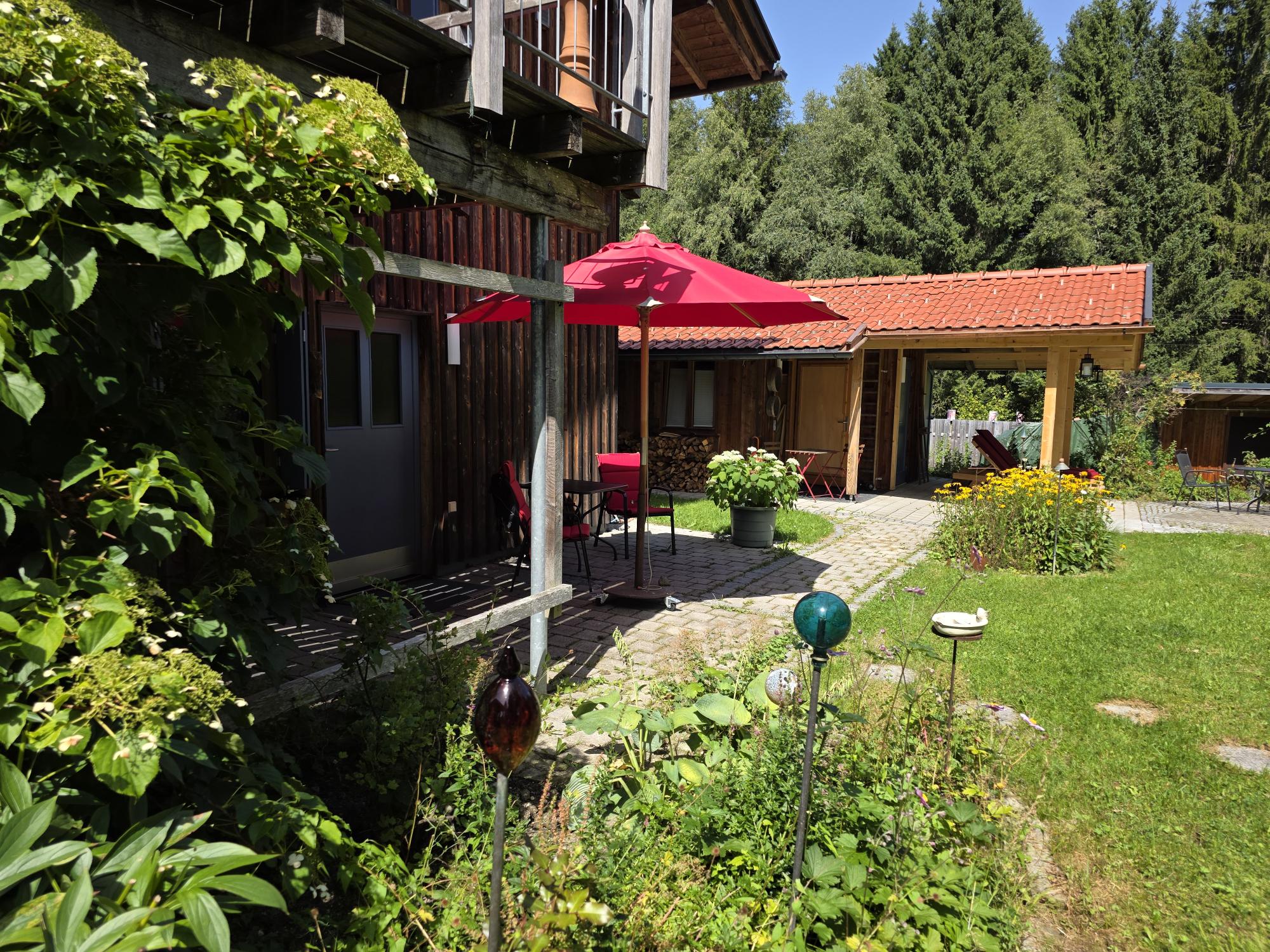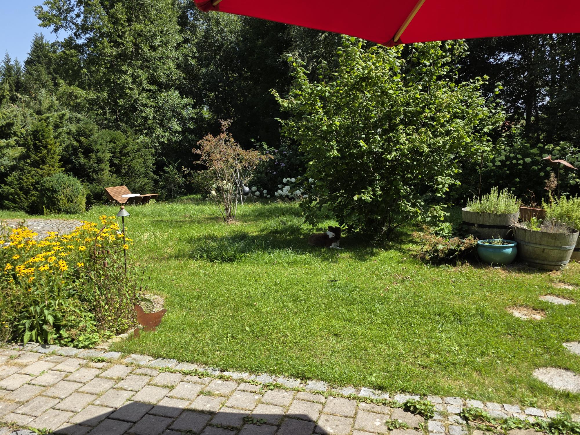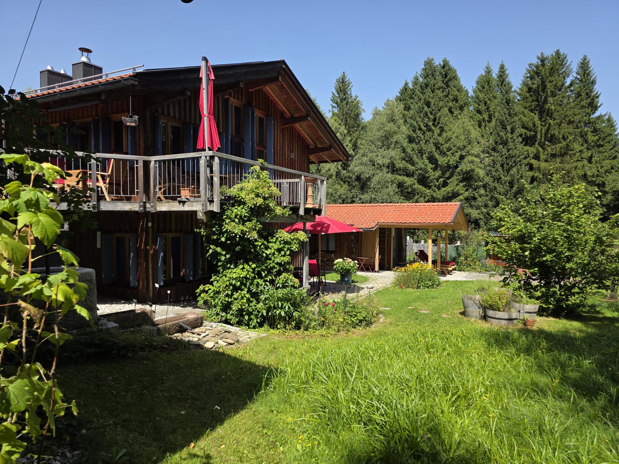 Das idyllische Holzhaus liegt sehr ruhig am Ende einer Sackgasse, direkt am Naturschutzgebiet.