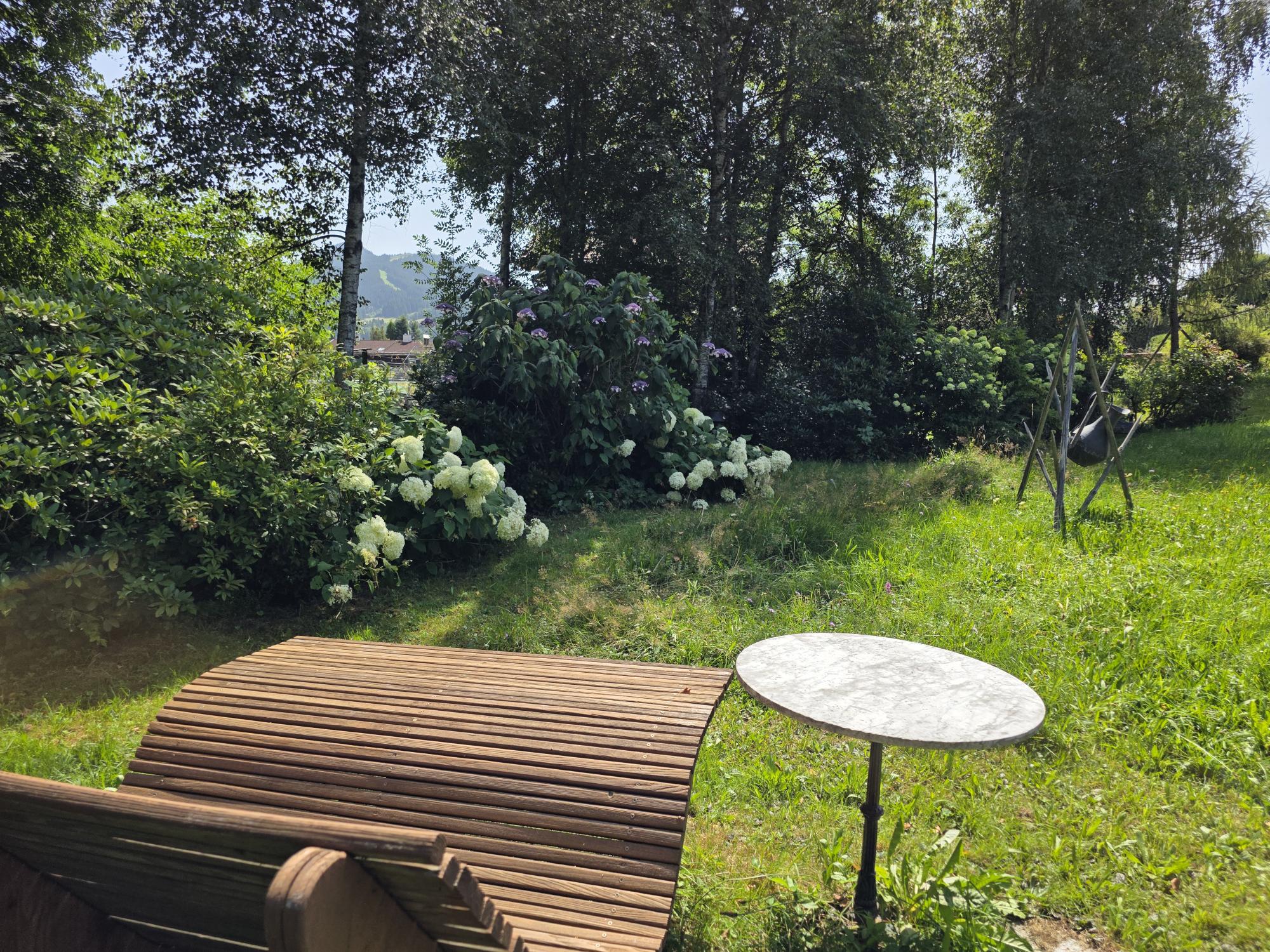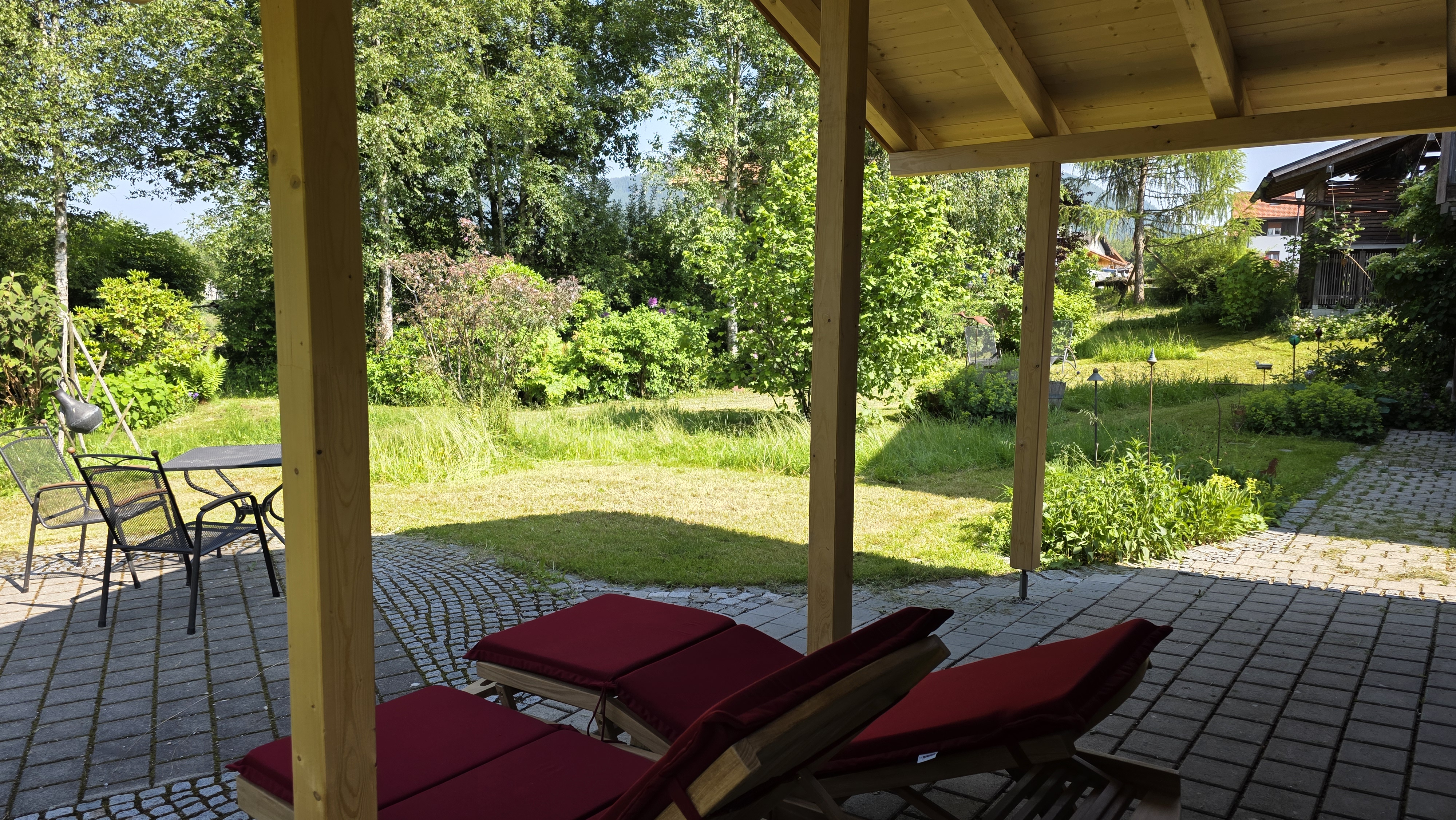 Gartenmöbel und Liegen stehen für Sie bereit.